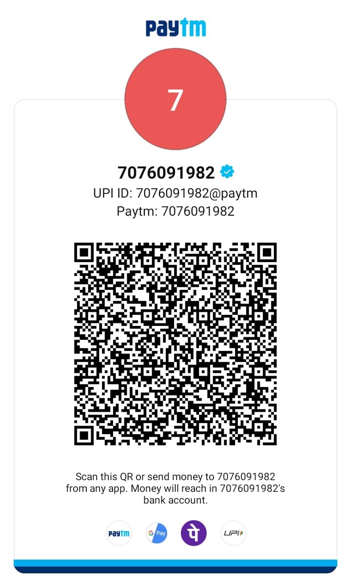 Scan the following QR Code and send screen shot of the payment to Mo.7076091982/9609222475
